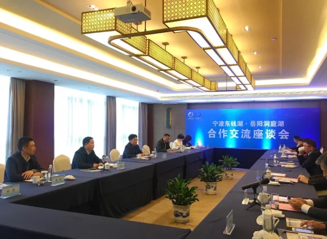 11月23日,湖南省岳阳洞庭湖旅游度假区与浙江省宁波东钱湖旅游度假区合作交流座谈会在东钱湖国际休闲湖泊论坛期间隆重举行。湖南省岳阳洞庭湖旅游度假区工委书记李运帷与东钱湖度假区工委书记叶继松就旅游发展和新区建设等事宜进行了深入交流。
