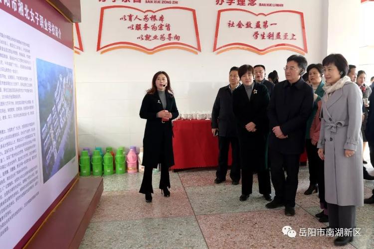 在湘北女子职业学校新校区建设项目现场,李爱武一行观看了南湖新区产业项目建设宣传片,并由该校老师介绍学校的发展概况,随后,又来到仿真实训基地参观了空乘人员的现场教学,并对学生们奋发向上的精神给予了肯定和鼓励。