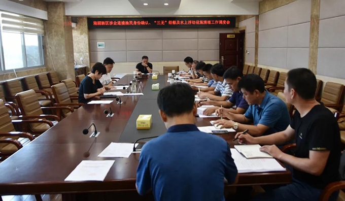 7月23日下午,区工委副书记、管委会主任雷欣主持召开涉企退捕渔民身份确认、“三无”船舶及水上浮动设施清理工作调度会。区工委委员、总经济师姜华及相关部门主要负责人参加。