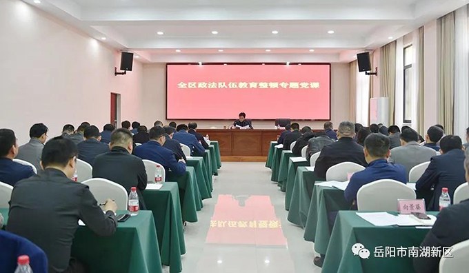 3月26日上午,区工委书记李运帷为全区政法队伍讲专题党课。他强调,要始终践行习近平总书记提出的新时期培养和选拔优秀干部“五好”标准的总遵循,坚持刀刃向内,坚决切除毒瘤,全力锻造一支党和人民信赖的政法铁军,为建设“三区五城”、全力谱写新时期南湖新区高质量发展的新华章提供坚强的政法保障。区工委副书记、管委会副主任李征兵主持,各街道办事处、管理处政法委员、公共安全办主任,区政法委全体工作人员等参加。