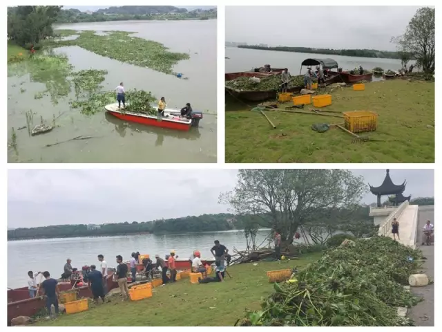 即便如此,南湖目前水位仍然偏高,距离保证水位不远。水下要开足马力抽,水面择要加派人手捞。上游冲刷下来的漂浮物,特别是大片的水葫芦等水生植物成为妨碍抽排、堵塞下游河道,影响泄洪救灾的最大危害。