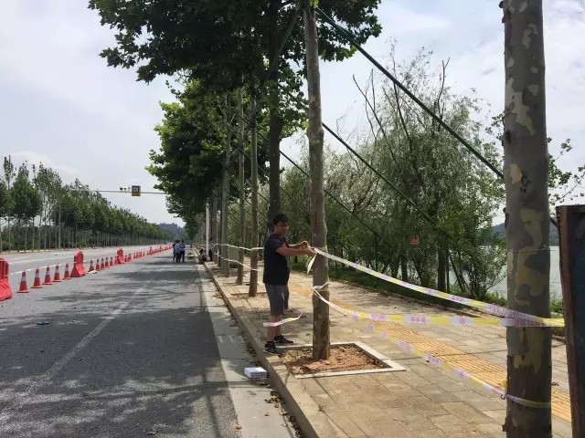 10日下午,南津港大堤已完成水马、安全锥、警戒线安放,保障市民步行安全通过。