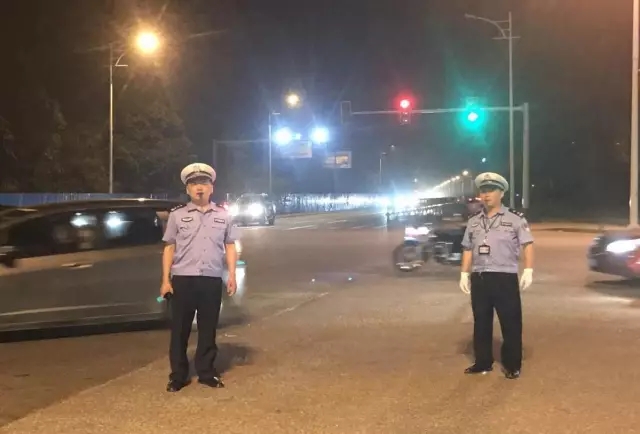 交警部门在南津港大堤深夜值守