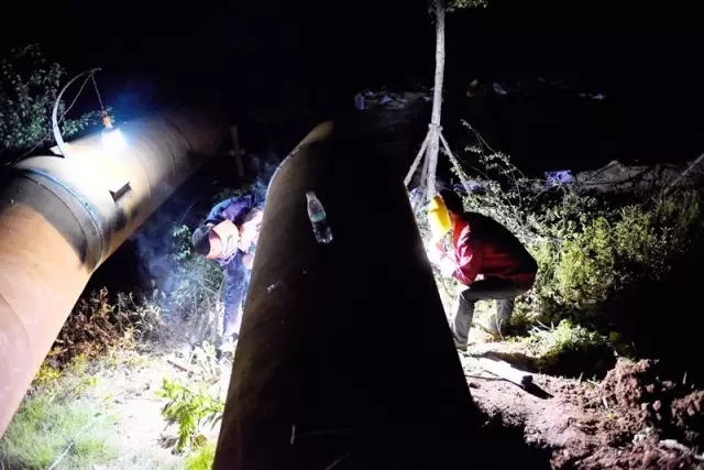 施工人员通宵焊接作业