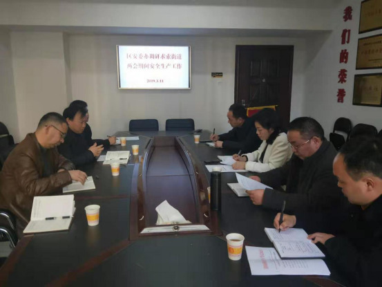 3月4日至8日区安委办结合当前“两会”期间的安全防范工作、节后复工复产的安全工作情况,进行了基层调研。各办事处(管理处)主要领导及安全生产分管领导简要汇报了“两会”期间安全生产工作开展情况,明确了2019年的工作目标。