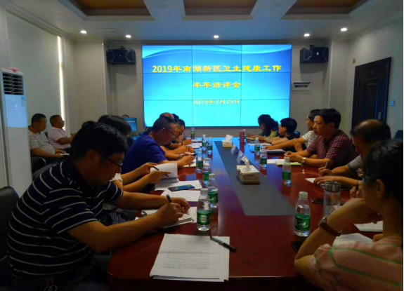 为确保2019年卫生重点工作各项目标任务如期完成,7月19日,我区召开上半年卫生健康工作讲评会, 区管委会副主任李精明,区卫健局班子成员、相关二级机构、股室负责人,各街道办事处、管理处卫计办主任和社区卫生服务中心主任、站所负责人共40余人参加。