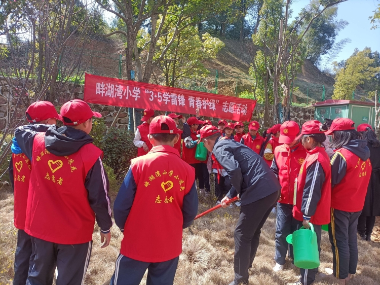 早春三月,草长莺飞间,冬天的寒意还未褪尽,春天带着绿色的气息向我们走来。3月12日是一年一度的植树节,恰逢此时春色怡人,莫要辜负好时光,畔湖湾小学结合“学雷锋·青春护绿”活动,进行了植树活动,为校园撒下一点绿色,收获一片绿意。