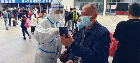 岳阳高铁站客流复杂、工作量大,面对国内外依然严峻的疫情形式,大家分布在各站台、地道口、进站口的测温和安检工作岗位,主动选择了与进站旅客的“密切接触”。穿戴好防护服、护目镜、防护手套“全副武装”,即使身穿防护服、佩戴口罩和护目镜时间长了就呼吸不畅、视线模糊,但党员志愿者仍选择坚持,从未退缩一步。“防控疫情是我们的责任,我是共产党员,我不去也会有其他同志去。”“我去实名制”“我去安检”“我去测温”这是先锋队员们的真实话语,也是他们实际行动的具体体现。