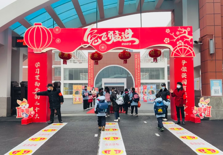 “新年好,早上好!”。师生重逢、同学相聚,每个人脸上都洋溢着灿烂的笑容进入校园。校园内,“兔年”元素氛围感满满。教室里窗明几净,老师们用心的温馨布置,黑板上美好的开学寄语,寄托了老师对孩子们新学期的殷切希望和美好祝福。