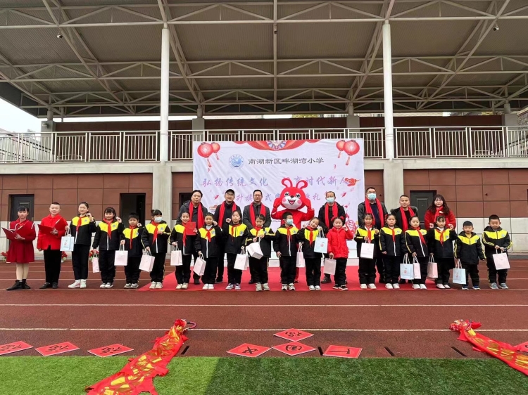福兔贺岁,喜悦欢腾。为了激励同学们以崭新的面貌迎接新学年,我区畔湖湾小学开启了一场拥有仪式感和传统文化内涵于一体的“弘扬传统文化润育时代新人”为主题的开学礼。在“福兔财神迎师生”、“福气满满送红包”、“欢欢喜喜过福门”三个仪式感满满的环节中拉开序幕。