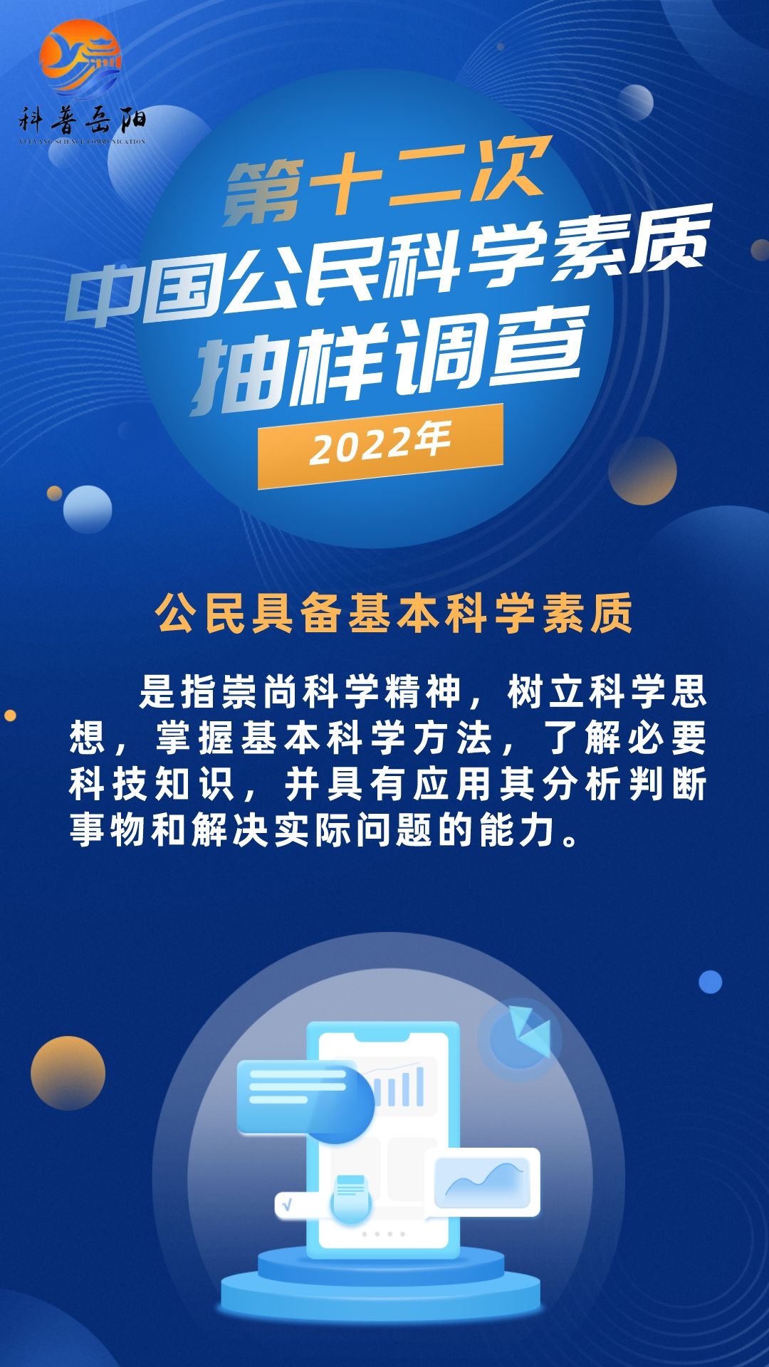 目前,第十二次中国公民科学素质抽样调查已在全国各地展开,调查对象为18-69岁公民,采取线上线下调查相结合的方式,主要测试调查对象掌握科学知识的情况。如果您被调查组选中为调查对象,请您积极配合调查人员的工作,您的测试结果将会直接影响到岳阳市公民科学素质指标的评价。