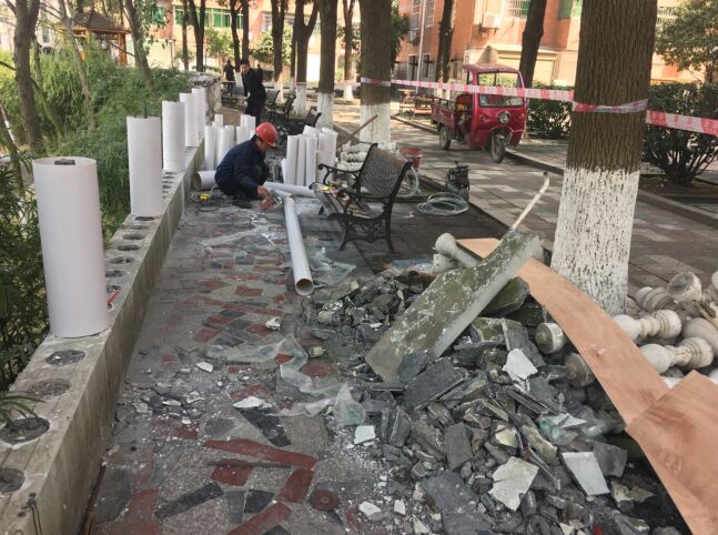 3月18日上午,湖畔新村小区广场上,区信访局局长刘明鸿正在与街道、社区有关负责人现场商议指导人居环境整治工作。小广场的文化墙、雕花石柱下,两个施工技术人员正拿着皮尺仔细地丈量,台阶下堆放的材料、沙石表明,伴随了小区居民近二十年记忆的文化小广场将拆掉重修,一个崭新的具有文化品位的露天舞台将进入小区居民的视野。