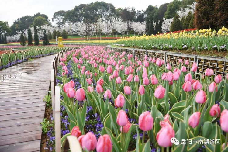 走在花语世界的樱花树下,调研队伍连连赞叹,并纷纷驻足合影留念。