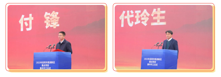 区党工委书记王亚丹致辞。王亚丹表示,项目是南湖高质量发展的基石,全区上下将推行“实名制”、压实“责任链”,发挥“引擎”作用、强化“擂台”意识、深化“比拼”行动,全面掀起攻坚会战热潮,推动项目早建成、早运营、早见效。同时与项目业主、建设和监理单位一起,将项目打造成为全市的亮点、精品和典范工程,为着力建设秀美南湖、品质新城,为岳阳建设名副其实的省域副中心城市做出新的更大的贡献!