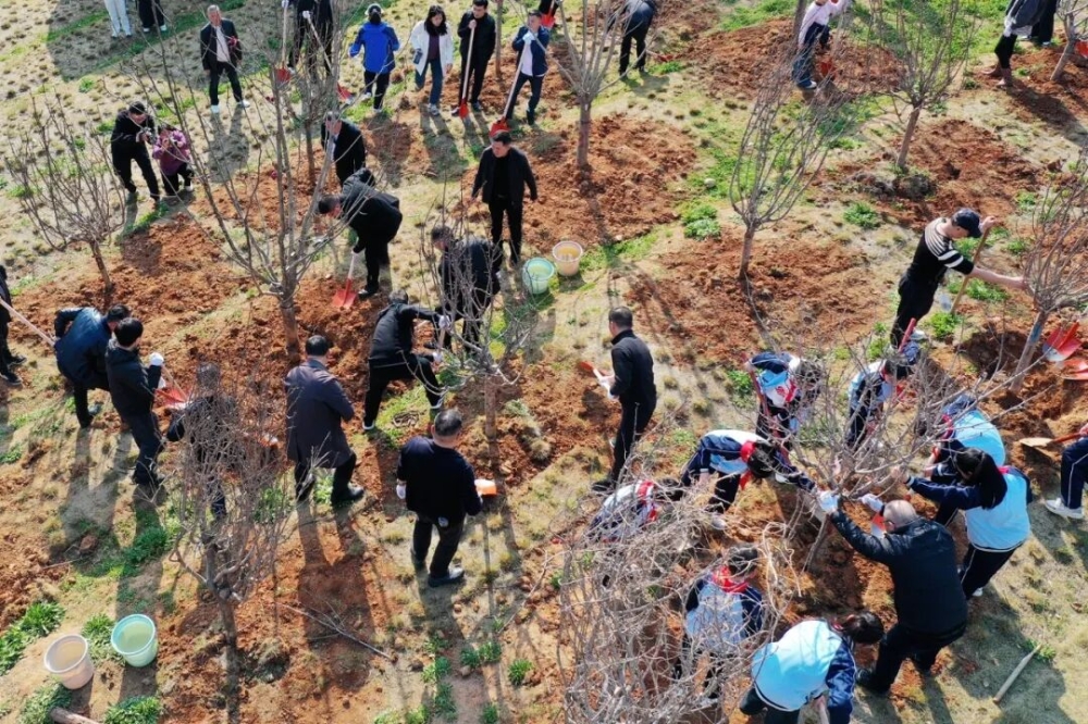 植树现场,王智勇与干部群众挥锹铲土、扶苗培土、踩实浇水,每一个环节都认真细致,现场呈现热火朝天、奋勇争先的劳动景象。经过一番劳作,新栽种的一株株适应当地气候的苗木整齐排列,在春日暖阳下舒展枝叶、生机盎然,为南湖大地增添了一抹新绿。