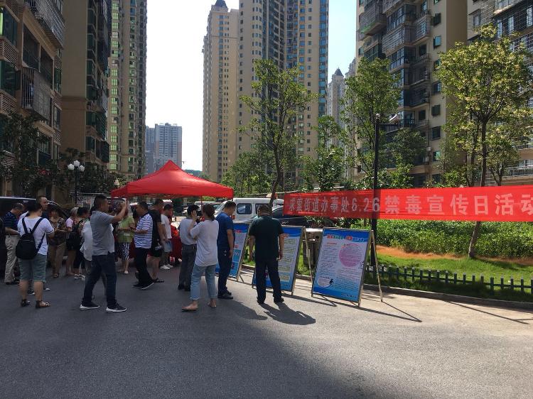 为了让广大居民充分认识毒品的危害,从而远离毒品,拒绝毒品,透过相互影响亲人和身边的朋友远离毒品,求索街道在辖区内开展禁毒宣传活动。