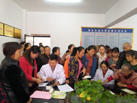 11月5日,在湖滨街道黄沙湾社区办公楼前,只见居民们进进出出异常热闹,三楼走廊里居民们排起了长长的队伍,来自社区卫生服务中心的医生忙着调查记录、为居民体检和采集血样。