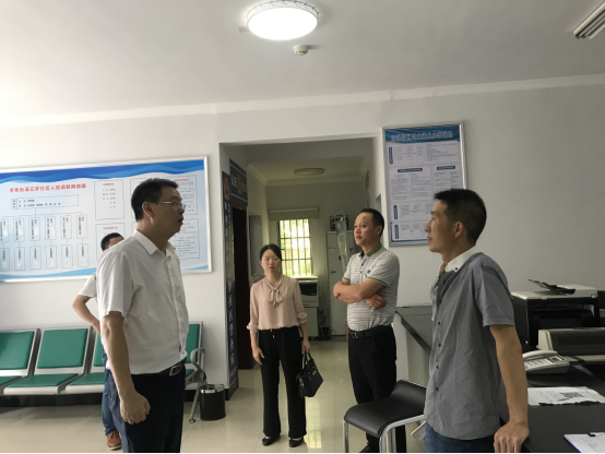 2019年6月19日上午,岳阳市退役军人事务局局长胡玮一行3人来求索街道办事处调研街道和社区退役军人服务站工作开展情况,街道工委书记易染红、工委委员范志祥、服务站负责人何亮陪同。