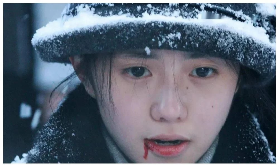冰天雪地的环境里,眼前的剧幕近乎被黑色系服饰与肃穆造型贯穿全程,从头至尾下个不停的大雪,更似乎要将世间的一切冰封或掩埋。但皑皑白雪上的一道道红色,关联无名英雄的流血与牺牲,成为了打破混沌的象征。它们勾勒出善与恶、是与非的界线,让共产党人纯粹而坚定的信仰,穿越历史触碰当下。
