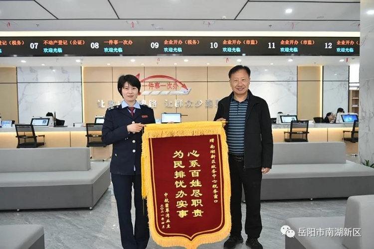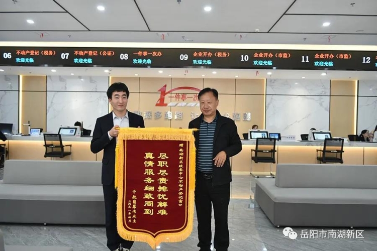 4月29日上午,市民刘海将三面锦旗分别送至区政务服务中心和中心不动产登记、税务窗口,感谢区政务服务中心工作人员热心周到的服务,并为其快速高效的办事效率点赞。