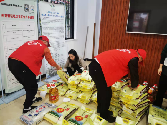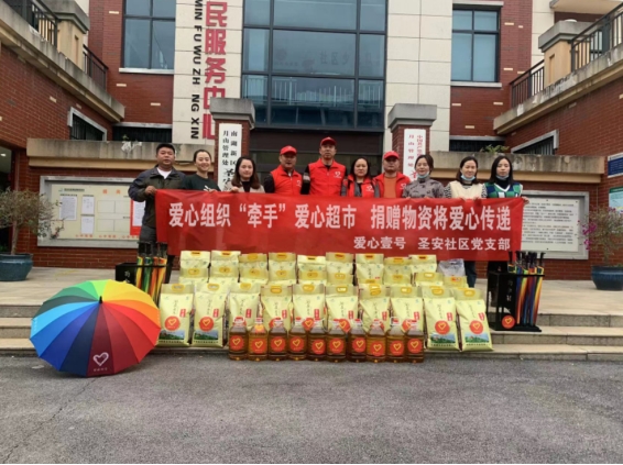 11月15日下午南湖壹号小区的“爱心壹号”互助小组为圣安社区“爱心超市”捐赠了价值5000多元的大米、食用油、爱心雨伞等生活物资,帮助“爱心超市”缓解了燃眉之急。