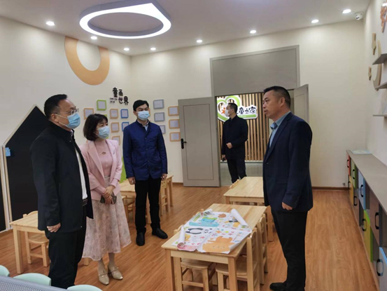 4月29日上午,南湖新区工委委员、管委会副主任方克君,区民政局局长谢芳一行到求索街道天灯社区,指导2022年“儿童之家”民生实事项目建设工作。