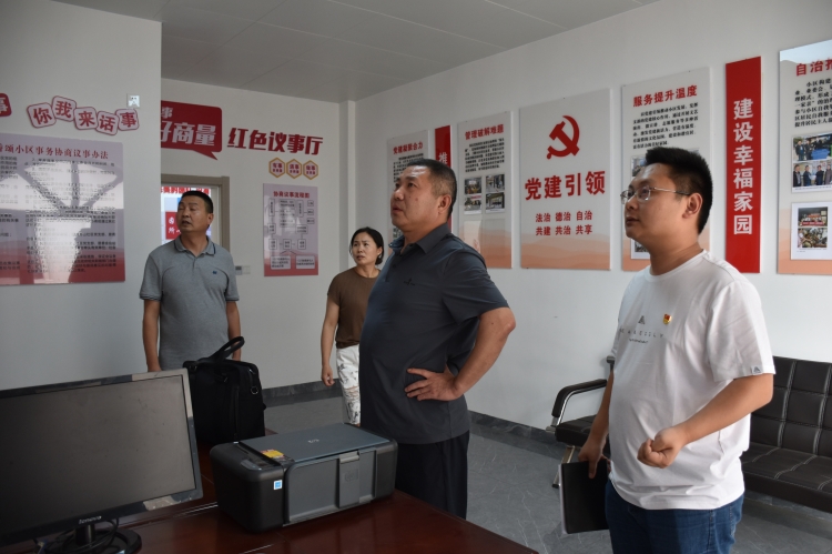 最后,方三艳一行来到雷公湖社区滨水翡丽城小区党支部活动室和社区新时代文明实践站改造施工现场,详细了解实践站的改造方案、功能设置和服务平台,并听取工作进展汇报。在小区志愿者工作室,方三艳一边看一边听取社区打造的“5.4模式德邻社”暨“五种形式、四类志愿者”志愿团队特色做法给予肯定,方三艳强调,社区党组织要发挥党建引领作用,坚持高标准建设、高水平管理;要依托新组织架构,推进小区党组织“五有”规范化建设;要做到坚持以党员群众需求为导向,紧盯群众需求,拓宽工作思路、细化各项举措,创新活动载体,以实际行动为小区居民解忧纾困。