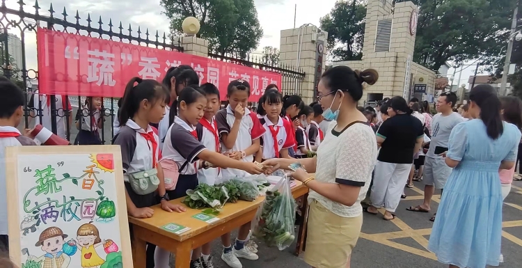 6月17日早晨,湖滨学校门口来了一群特殊的小“菜农”,他们就是湖滨学校的小学生们。带着亲自栽种的无污染绿色蔬果,他们在老师的带领下,开展了一次别开生面的早市活动,展示着这几个月以来他们喜人的劳动成果。