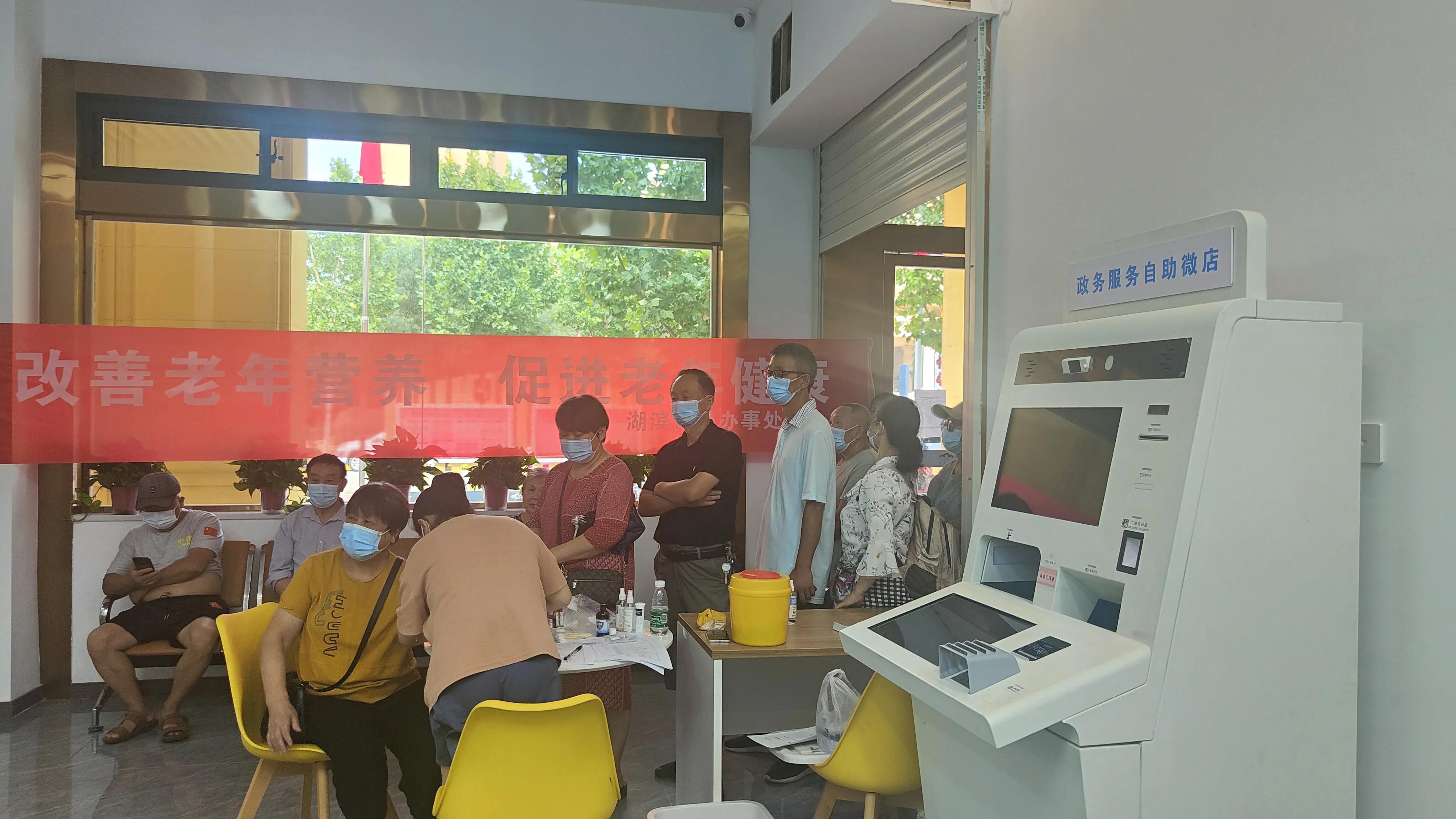 “老人家,您有哪里不舒服的吗?我帮您检查一下!”“这两天我睡得不是很好,帮我检查看看血压升高没有。”“这么热的天都来给我们体检,你们辛苦了……”7月29日清晨,岳阳市南湖新区湖滨街道雷公湖社区政务大厅内热闹非凡,社区正在组织开展以“改善老年营养·促进老年健康”为主题的免费体检活动。来自南湖社区卫生服务中心的医务人员一大早便来到这里,为老人们进行免费体检。
