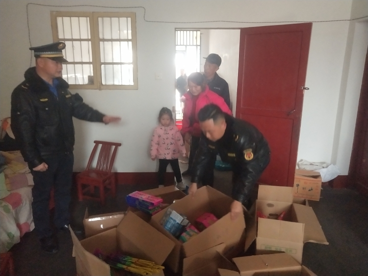 1月13日,南湖新区城管局龙山中队接到龙山管理处群众举报,反映在一社区微信群有人非法销售烟花爆竹。城管队员迅速展开调查取证,当场查扣烟花爆竹20余箱。