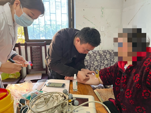 各社区的党员志愿者带领求索卫生服务中心的医生入户患者家中展开体检义诊,测量血压等,对常见病、慢性病进行初步筛查、诊断和治疗,并结合病情为其制定合理的健康指导方案,给予合适的饮食建议。在义诊结束后,患者家属感叹道:“每年社区都会带着大夫上门来体检义诊。真的是感谢社区、感谢大夫们。”