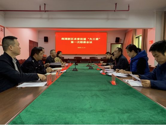 4月4日下午,南湖新区求索街道“大工委”第一次联席会议召开,进一步探索党建引领基层社会治理的新路径,推动以党建引领赋能经济社会高质量发展。街道党工委全体成员、区税务局副局长王朝辉、南湖派出所教导员孙霄参加。
