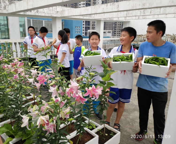 金鹗小学“童心花园”前身为“小树苗基金会”,创建于2011年,以创绿色环境,树环保意识,学环保知识,施环保行动,育环保新人为宗旨,孩子们将收集的废纸张、饮料瓶等可回收垃圾进行义卖,义卖的资金纳入“小树苗基金会”,然后统一购买花种、树苗,在学校划定的劳动基地由辅导员及班主任带领,自主培育大大小小的盆栽。2019年学校对教学楼楼顶进行防水加固,加装护栏,将教学楼楼顶一个2000平方米的天台改造成种植园,作为学校劳动教育基地,更名为“童心花园”,寓意用真诚童心,培育最美花朵,延续“小树苗基金会”的环保理念。孩子们细心管理,耐心呵护,记录种植过程中的所见所闻所感,体验收获的喜悦,见证生命的奇迹,用最传统的种植方式,培育最鲜活的生命,用最鲜活的生命教育最纯真的孩子。