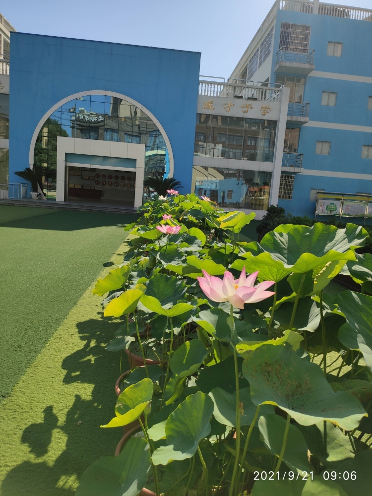 每到鲜花盛开的季节,我们就把楼顶童心花园的花卉等搬到小操场周围,便于师生课余时间一起欣赏一起探讨。十一月中旬,很多花卉开始凋谢了,可我们小操场上的荷花还竞相开放这,蜜蜂也赶集似地在花间忙碌着采蜜,可爱的孩子们三三两两围着荷花,不由自主地背起“小荷才露尖尖角,早有蜻蜓立上头”的诗句。他们看着荷叶中间滚动的露珠,一个个笑逐颜开地用手捧着荷叶,左右晃动起来。随着露珠的滚动,伴随的就是孩子们“咯咯”的笑声,那份天真烂漫的童真绝对可以治愈你,融化你的心。