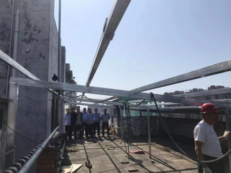 6月20日,南湖新区区综合执法支队联合求索街道办事处对辖区内公建小区违建开展拆除行动。此次拆除行动,共出动执法人员 10 余名,执法车 3 辆,拆除2处违法搭建的棚亭面积约300平方米。
