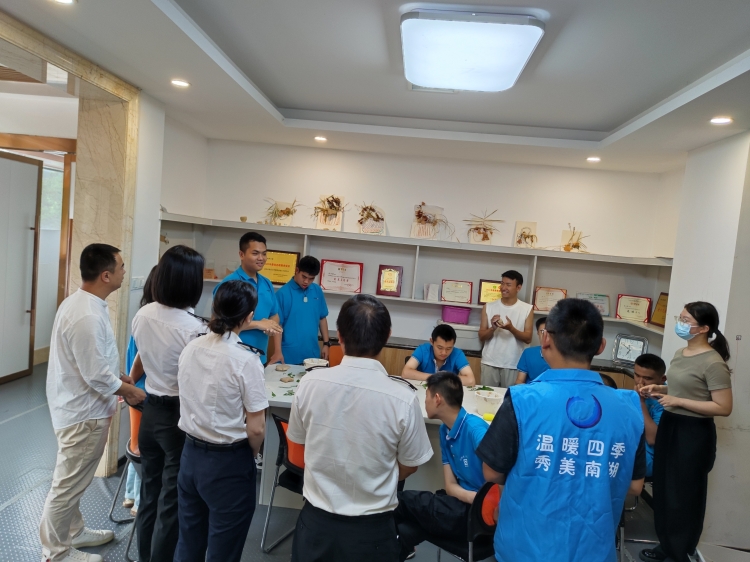 康淼残障人士帮扶中心工作人员罗君带领大家一起参观了“照料中心”活动设施,介绍了这群心智障碍群体的基本情况,并让“心青年”们热情洋溢的介绍和分享了自己的姓名、年龄和爱好以及梦想。随后志愿者们与“心青年”们相聚在一起,开展陶艺制作,在志愿者的帮助下,大家拿着陶泥进行拍、捏、揉、推等步骤后,在陶泥上印上自己喜欢的花朵、树叶等图案,做出了一件件形态各异的作品。志愿者们在制作过程中与心智障碍青年进行互动与交流,让他们感受到了通过努力之后所获得的肯定与温暖。