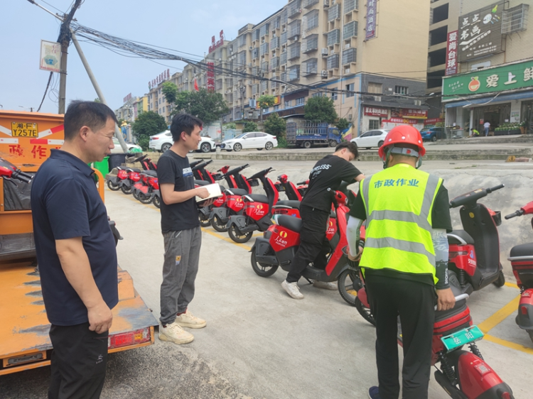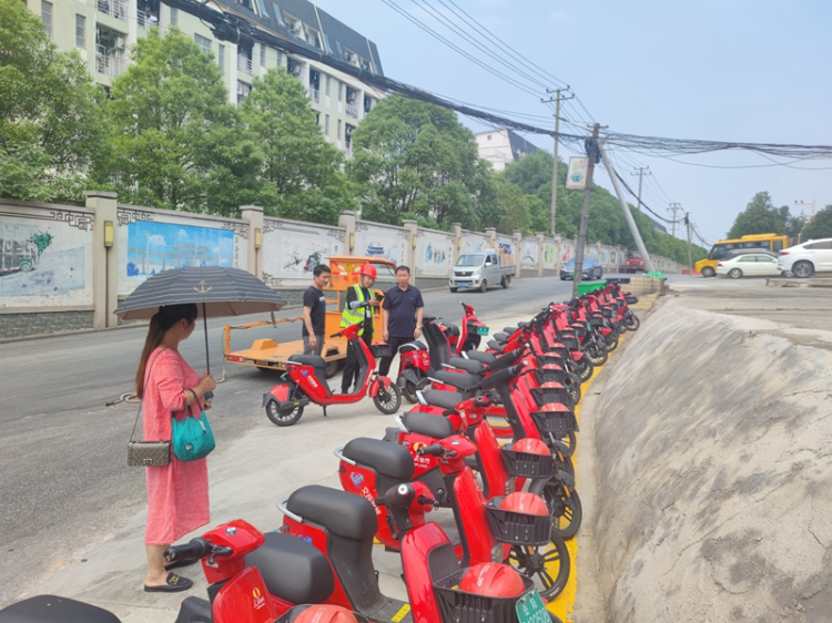 共享车腾出的地原本属于社区党员龚先生家自留地,党总支朱书记在研讨会后的第一时间便找上门,通过一番沟通,党员龚先生同意无偿将土地‘让’出来·····在土地的问题协商好的同时,5路车终点站悦时宾馆彭老板主动站出来出资挖除和运走土方并负责硬化事宜。一边紧急布置放置点,另一边社区工作人员与岳阳交投下属单位(岳阳智行交通科技有限公司)对接,该公司负责人经过现场查看和规划,同意在辖区内放置50台共享电动车并公示租用明细和注意事项公示牌。