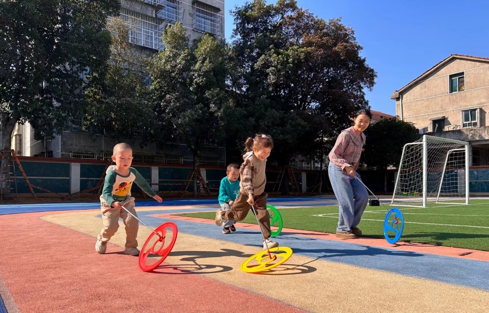 滚铁环,又称“滚铁圈”或“推铁环”,是中国传统的民间体育运动项目,其历史源远流长。滚铁环作为一类健身活动,可以锻炼幼儿的耐力、协调能力以及关节的灵活性,增强手指、手腕力量。同时也对发展速度、力量,提高中枢神经的传递性,以及增强心肺功能都具有明显的促进作用。