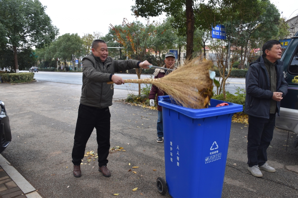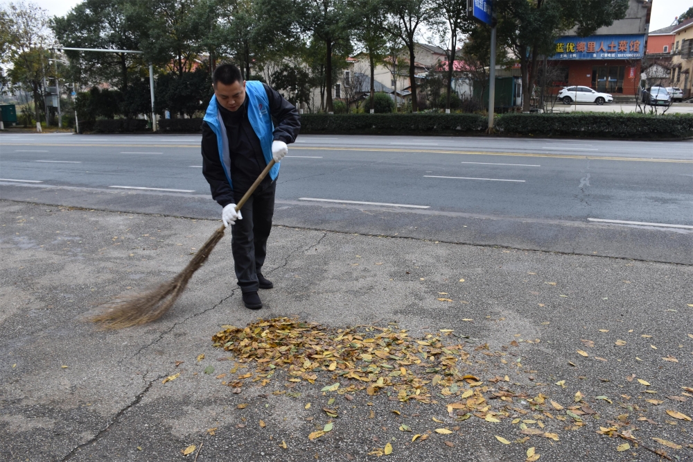 活动当天,气温骤降,低至2度,天气异常寒冷,但仍挡不住党员干部参加环境整治大扫除的热情。活动中大家不畏寒风,迎风而上,挥舞扫帚、铁锹清扫和收集道路上的枯枝落叶,手持夹子和塑料袋捡拾绿化带内的白色垃圾,认真清理辖区内的卫生死角、乱堆乱放。清扫过程中,年轻力壮的男青年干部手操锄头把被大风刮进风景灌木丛中的枯枝和树叶逐一扒出来,然后由女党员干部用扫把扫入簸箕装进专用大号垃袋,在大家的相互配合、共同努力下,清扫垃圾、枯枝落叶和杂物等共12大袋,街面环境整洁一新。