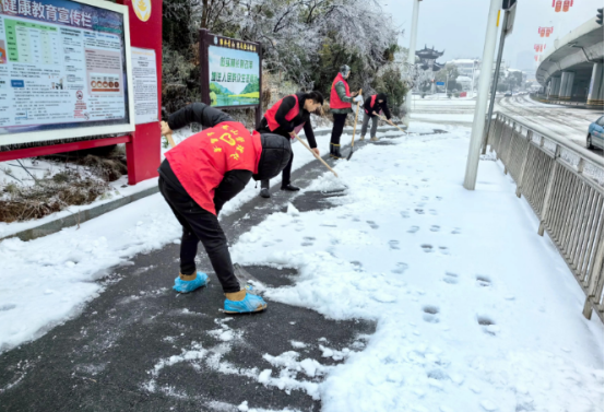 2024年春节临近,岳阳市出现低温雨雪冰冻天气,导致路面积雪冰冻严重。为全力应对寒冷的冻雪天气,保障辖区内道路畅通运行和居民的出行安全,2月4日,南湖新区龙山管理处阁子市社区党委吹响扫雪铲冰“集结号”,号召全体党员以居民小组为单位开展铲冰除雪志愿服务活动。