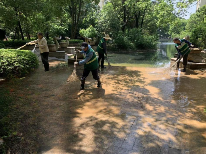 最近出现强降暴雨,致使恒大名都小区绿化带泥沙随雨水流到道路上,造成沉积,严重影响了居民的出行安全。为尽快恢复路面状况,确保居民安全出行,南湖新区求索街道云梦社区党总支部联合金碧物业开展清淤志愿服务活动。