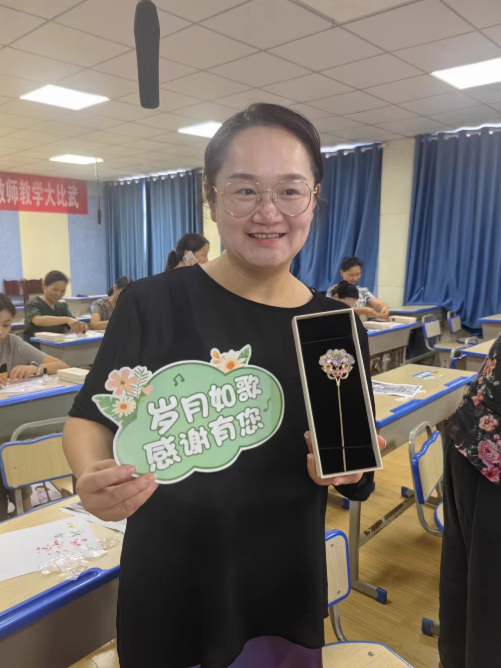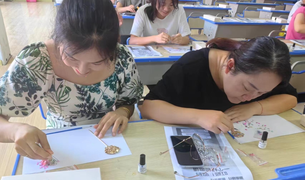 活动现场,教师们围坐一堂,认真学习螺钿镶嵌的技艺,将色彩斑斓的螺钿片巧妙地镶嵌在发簪之上,每一道工序都凝聚着匠人的心血与智慧。教师们纷纷表示,这样的活动不仅让他们感受到了传统文化的博大精深,也增强了团队协作的能力,为教师节增添了别样的色彩。