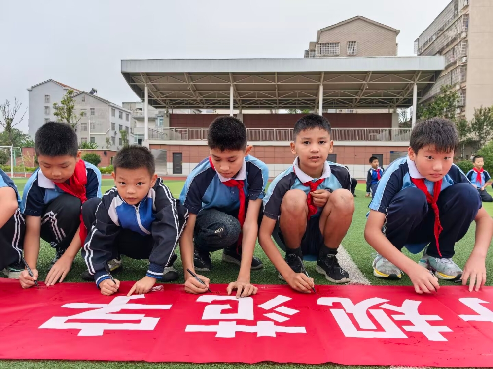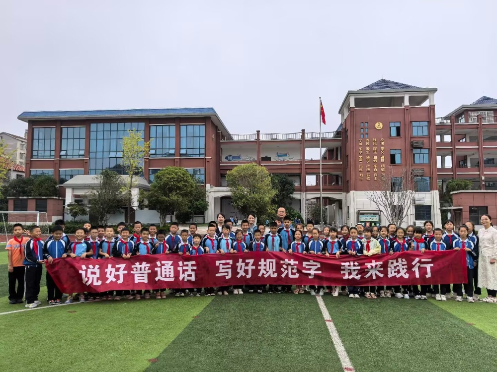 为深入推广普及国家通用语言文字,服务铸牢中华民族共同体意识,9月19日,南湖新区畔湖湾小学举行了以"签名承诺践初心,推普聚力筑同心"为主题的推广普通话承诺签名活动。活动特邀2201班全体同学及来自维吾尔族、苗族、壮族等9个民族的10名少数民族学生代表共同参与。