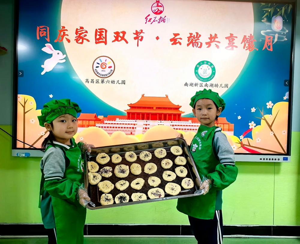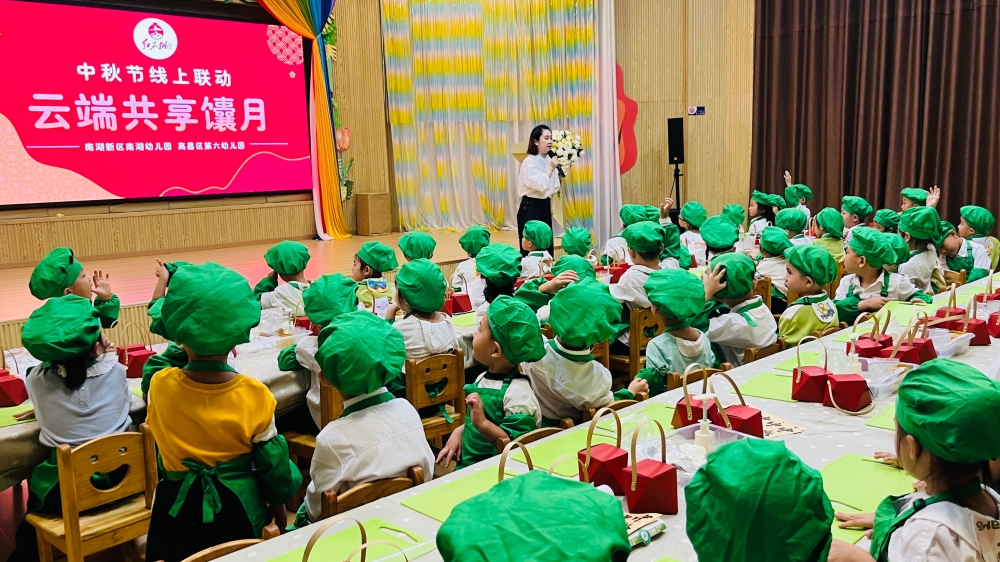 童心无界,月圆同心,值此家国同庆之际,高昌区第六幼儿园果一班与南湖幼儿园果一班、豆一班共同打造“云端共享馕月”跨地域联动活动。通过实时屏幕互动,在云端共同感受中华文化的绚丽多彩,携手度过了一个极具教育意义的节日。这场特别的活动不仅让孩子们领略了传统节日的深厚底蕴,更在他们纯真的心田播撒下爱国爱家的精神种子。