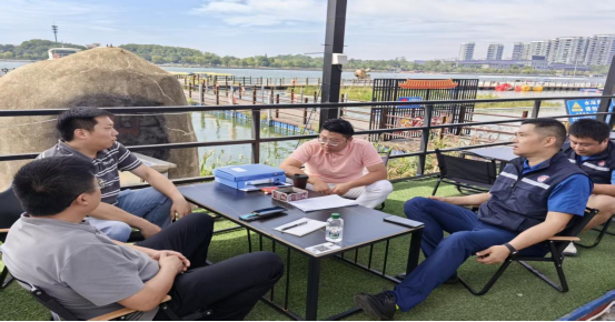 应急管理局负责人、南湖街道工委副书记到后浪公园、水上运动中心查看假日安全情况,水上运动中心旁水域今年防溺水排查时就设置了警示牌和救生圈救生绳等,根据暗访指出问题,南湖街道今天下午在水塘其它方位再增设2块警示牌。