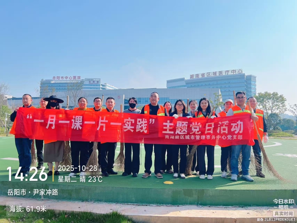 随着岳阳市中心医院正式搬迁至南湖新区樊陈路,周边环境卫生保障成为关乎就医群众体验、彰显城市文明形象的重要课题。为切实守护医院周边洁净有序的环境秩序,10月28日,南湖新区城市管理事务中心党支部迅速行动,以党建红引领环卫蓝,组织全体党员及志愿者开展义务捡拾垃圾专项活动。