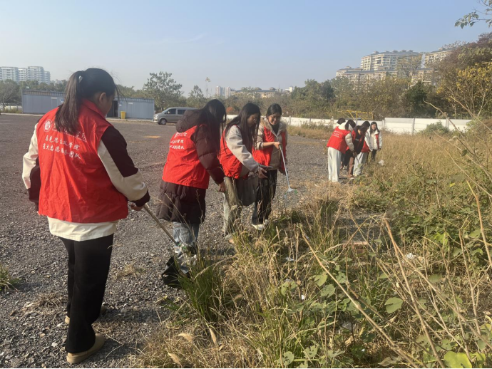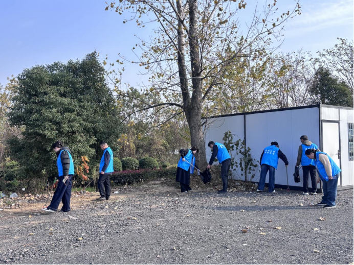 活动当天,志愿者们早早来到南湖广场指定集合点,经过现场的工具分配和任务分工后,迅速投入行动。大家手持清洁工具,沿着南湖广场沿岸步道、周边绿化带,仔细清理塑料袋、饮料瓶、烟头、枯枝落叶等各类垃圾。从岸线边到车道旁、从草地到路面,志愿者们各司其职、配合默契,形成了“人人参与、共护青绿”的良好氛围。冬日的南湖畔涌动着志愿红的暖流,成为一道独特的风景线。