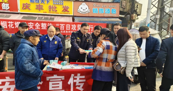 为切实保障人民群众生命财产安全,我区迅速行动,周密部署,通过强化宣传教育、排查整治隐患等多项举措,织密织牢安全防护网。宣传人员进商店、超市等人员密集场所开展上门宣传,通过悬挂宣传横幅、现场发放宣传资料开展烟花爆竹打非治违百日攻坚行动,向群众普及火灾的危害性和防火的重要性。提醒他们注意用火用电安全,提升消防安全意识和自防自救能力。