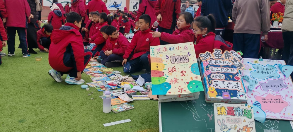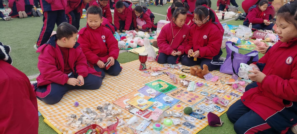 活动现场化身欢乐的绿色集市。各班摊位创意十足,书籍、玩具等闲置物品和学生们精心制作的美食和手工艺品找到了新主人。在班主任、配班教师及家长志愿者的精心组织与协助下,同学们化身“小掌柜”,热情的介绍商品,认真的进行交换。老师们悉心指导,家长志愿者们协助布置、管理、看护并记录精彩瞬间,共同引导学生在实践中理解循环利用的意义,锻炼沟通与合作能力。