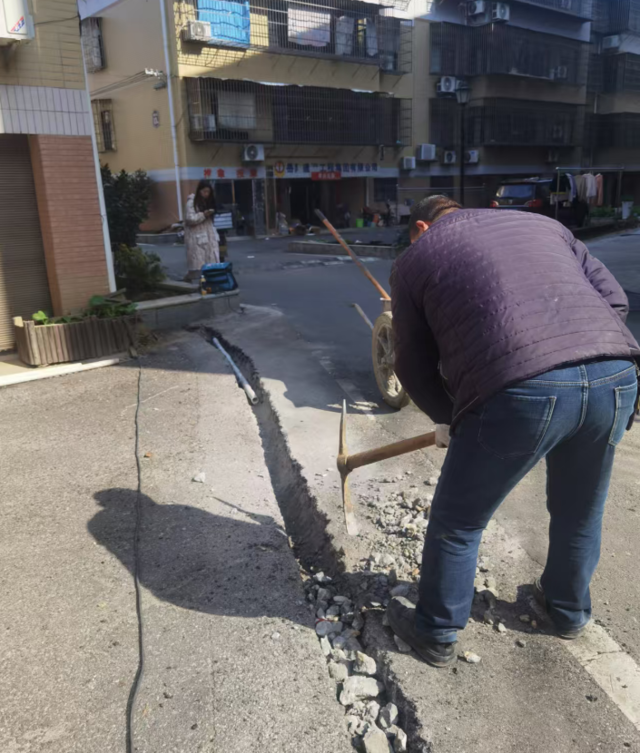 为了尽快恢复照明,维修人员不得不破开沥青路面,以便接触到那些已经烧毁的老旧电线。经过一整天不懈的努力,约80米长的全新电线被小心翼翼地铺设到位,替换掉了原有的破损线路,整个小区再次沐浴在了温暖的灯光之中。